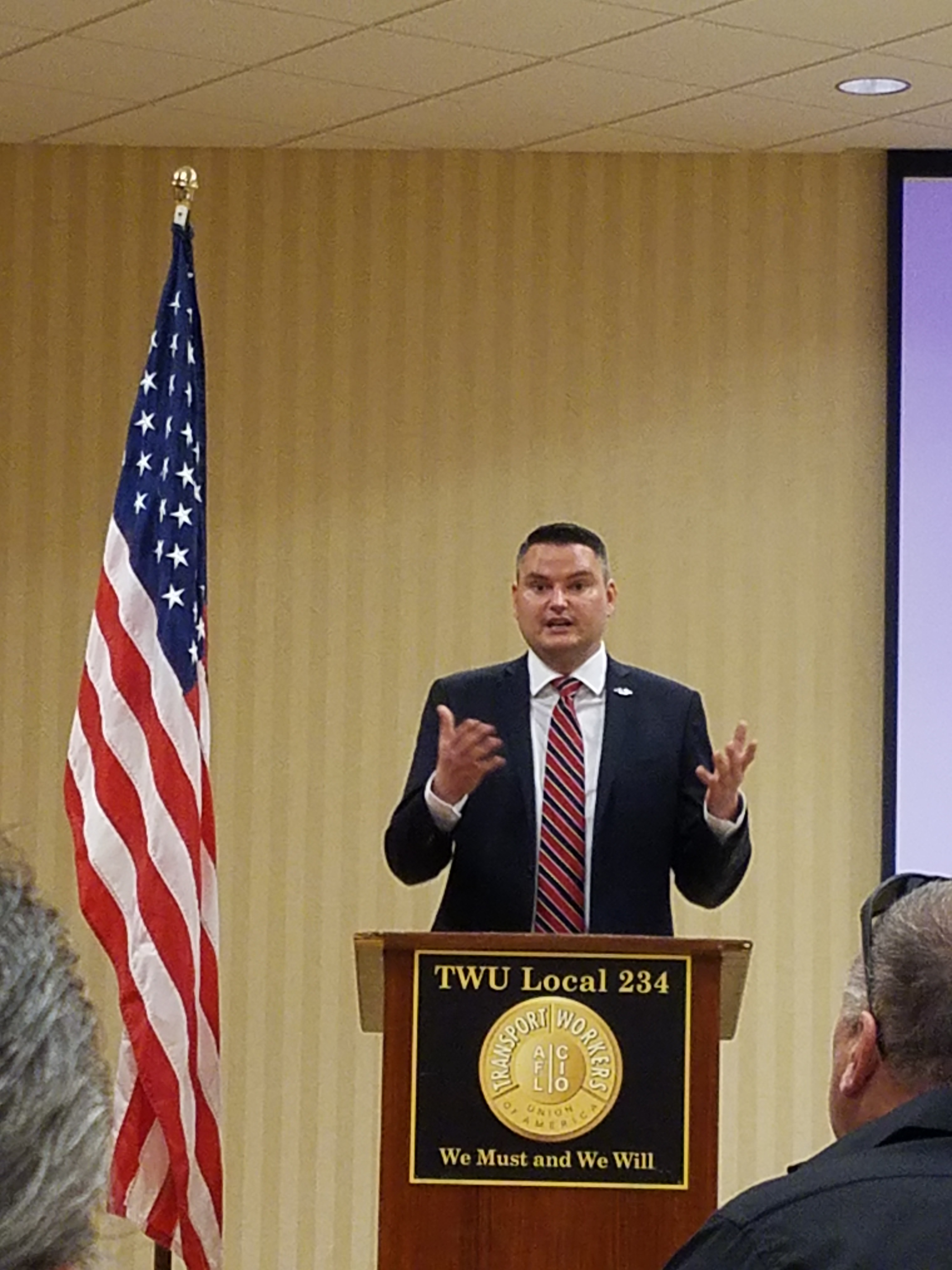 Pennsylvania State Representative and Veteran Nick Miccarelli addressing the TWU Veterans Committee on the need for veterans to run for office. - 252 Veterans